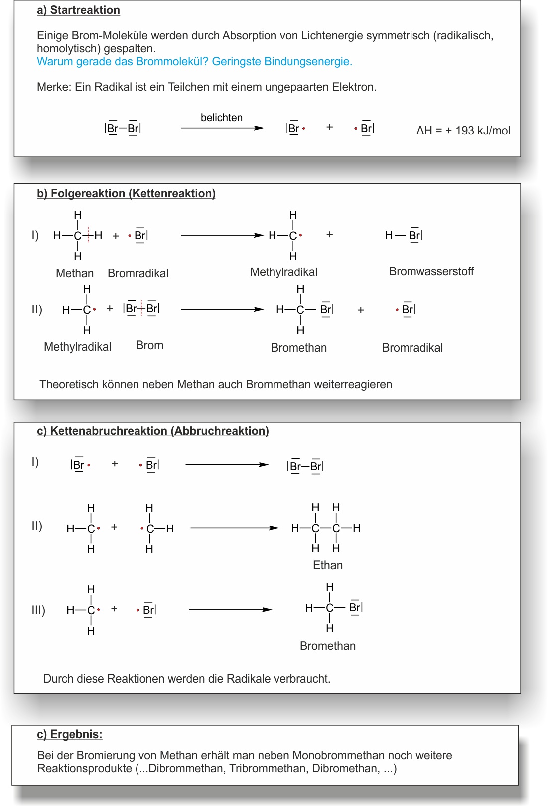 Die Bromierung von Methan ist eine radikalische Substitution (SR-Reaktion).