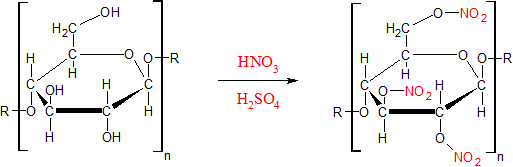Herstellung der Schießbaumwolle: 20 mL konz. H2SO4 + 10 ml rauchende HNO3 zur Kühlung kaltes Wasserbad; 2 g Watte dazugeben und mit Galsstab umrühren. Nach 10 Minuten wird die veresterte Watte nur gut mit Wasser ausgewaschen und anschließend im Exsikkator getrocknet.